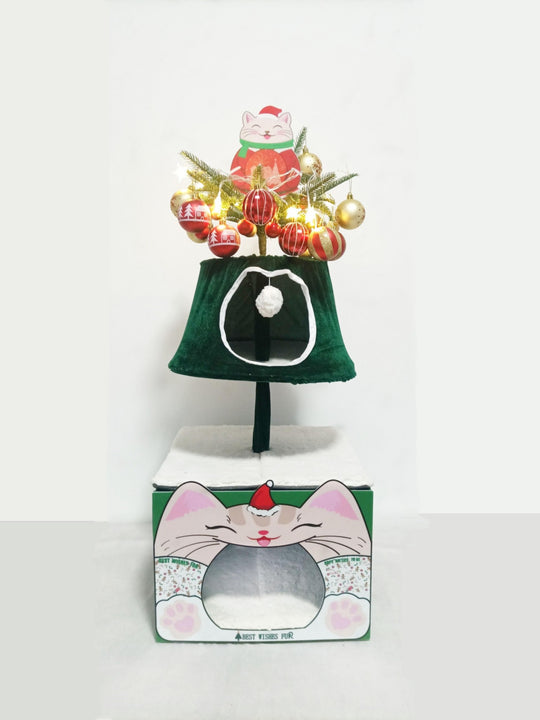 Three in One Christmas tree. Cat Christmas tree, cat house, and cat topper. Classic Spruce